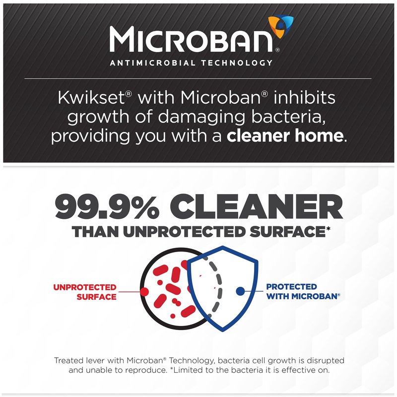 - MICROBAN PROTECTION: Kwikset’s door hardware is treated with Microban, this offers powerful product protection that is 99.9% cleaner than an unprotected surface