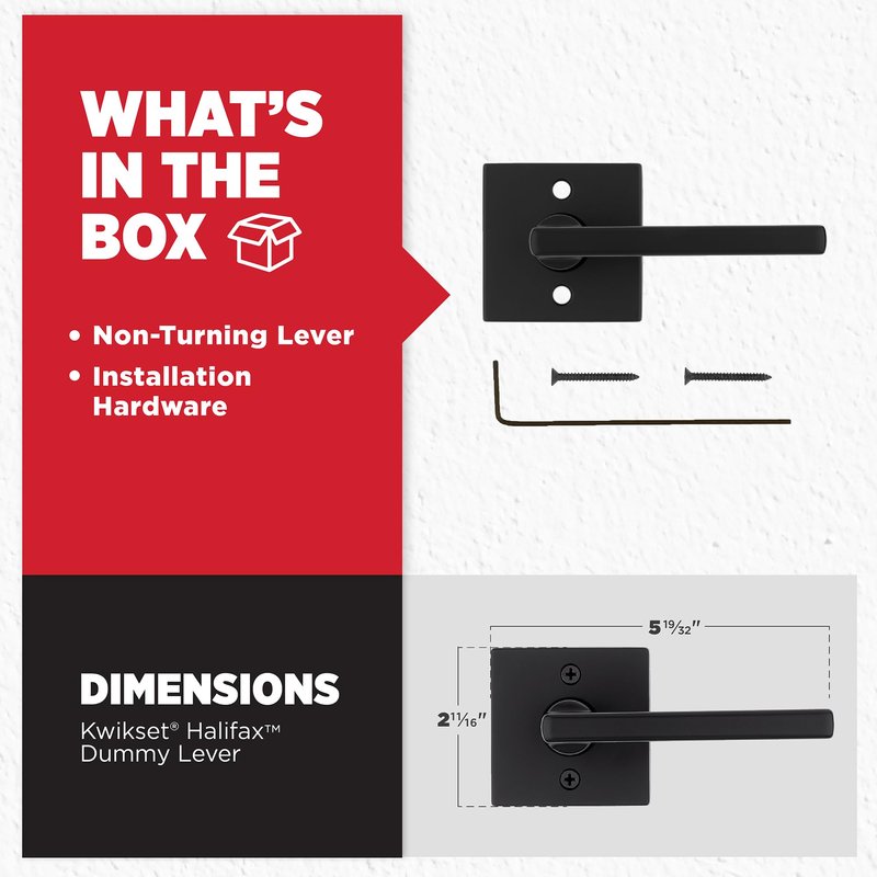 Kwikset Halifax Dummy Door Handle, Single Sided Lever for Closets, French Double Doors, and Pantry, Matte Black Non-Turning Reversible Interior Push/Pull Lever, with Microban Protection