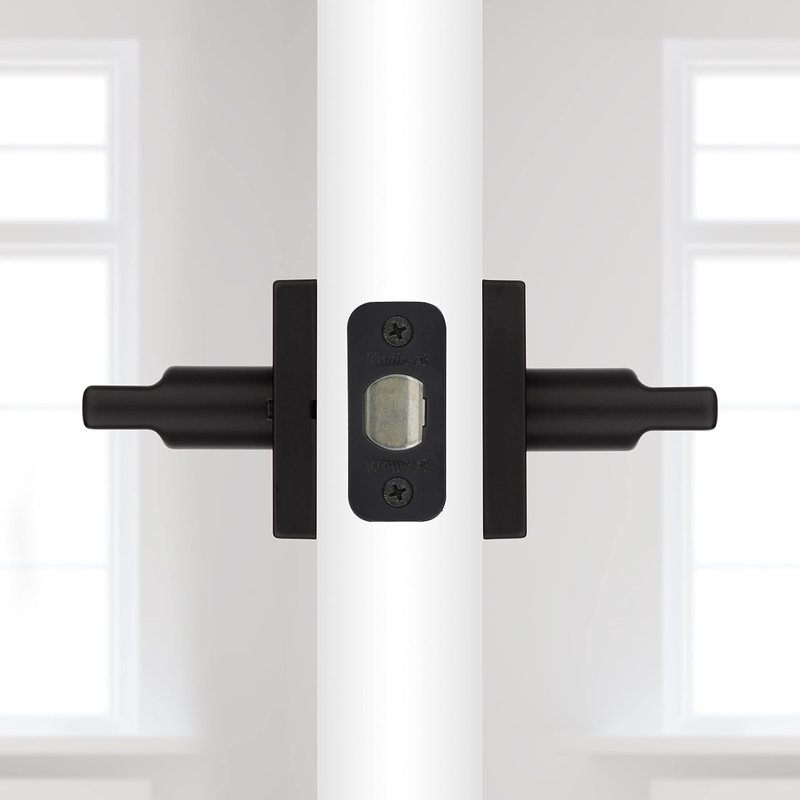Kwikset Halifax Interior Privacy Door Handle with Lock, Door Lever For Bathroom and Bedroom, Matte Black Reversible Keyless Push Button Lock Door Lever, with Microban Protection, Square Rose