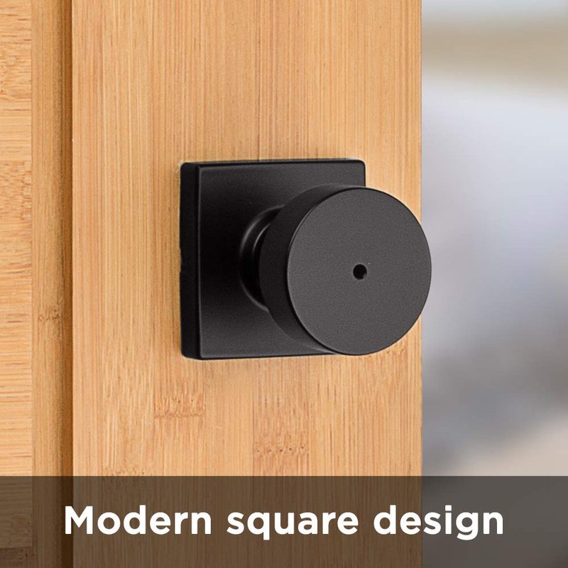 Kwikset Pismo Interior Privacy Door Knob with Lock, Door Handle For Bathroom and Bedroom, Matte Black Keyless Turn Lock Doorknob, with Microban Protection, Square Rose