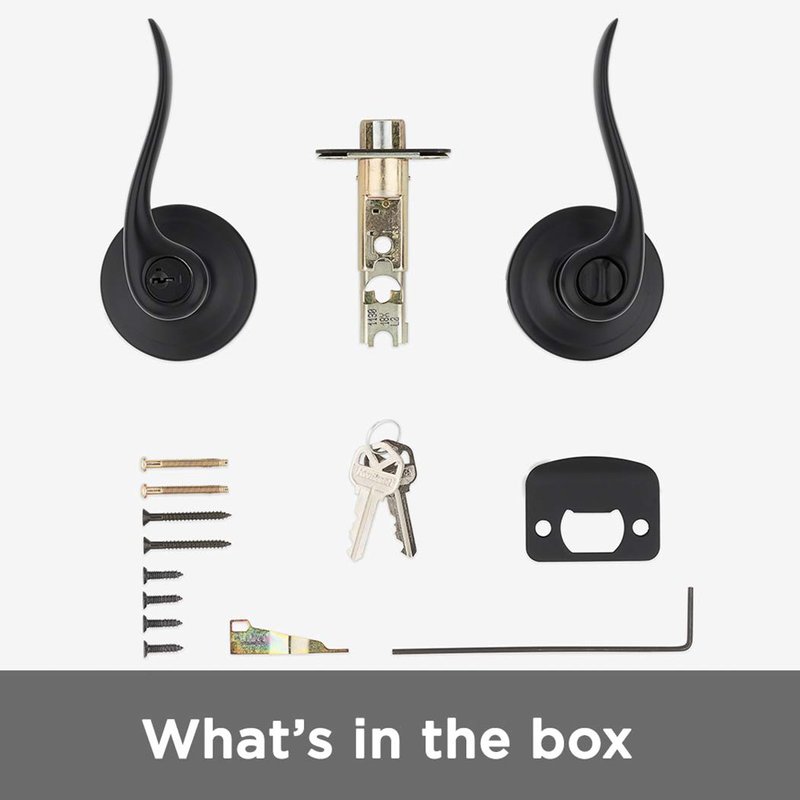 - BOX INCLUDES: Exterior Keyed Door Lever, Interior Lever, Adjustable Latch, Intallation Hardware, SmartKey Tool, 2 Keys, Install Guide