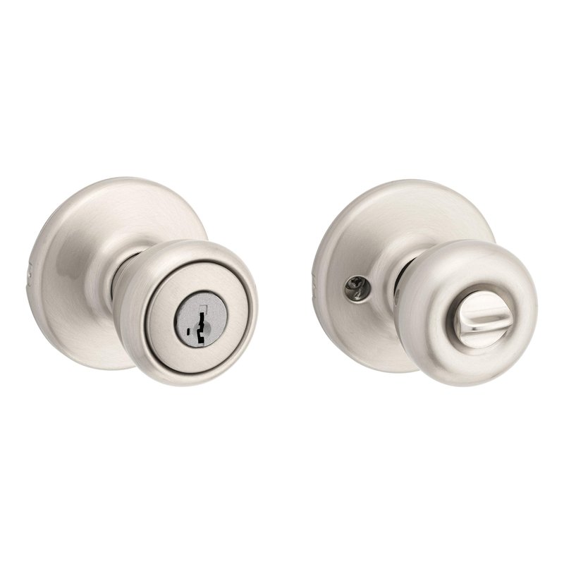 Kwikset Tylo Entry Door Knob with Lock and Key, Secure Keyed Handle Exterior, Front Entrance and Bedroom, Satin Nickel, Pick Resistant SmartKey Rekey Security and Microban