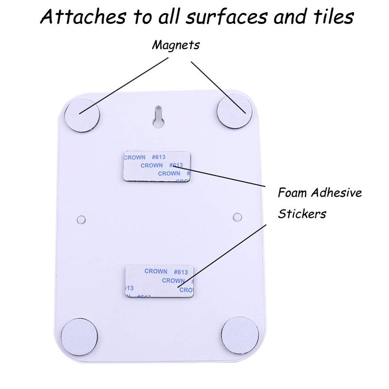 Magnetic Design: Attaches to all surfaces and tiles, with four magnets on the back and two stickers to place on non metallic surfaces.