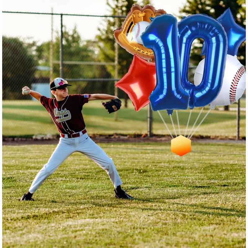 - EASY ASSEMLY|EXCITING DECORATION: Just inflate the 10th birthday balloons boys slowly till 90% full, then pinch tightly the self-sealing valve without bothering knotting, we can hang the 10th birthday baseball balloons with ribbon in the living room, bedroom, porch, or fix them with tape on the wall, window, curtain, balloon arch garland etc, easy way to set up wonderful tenth birthday decorations for baseball lovers.