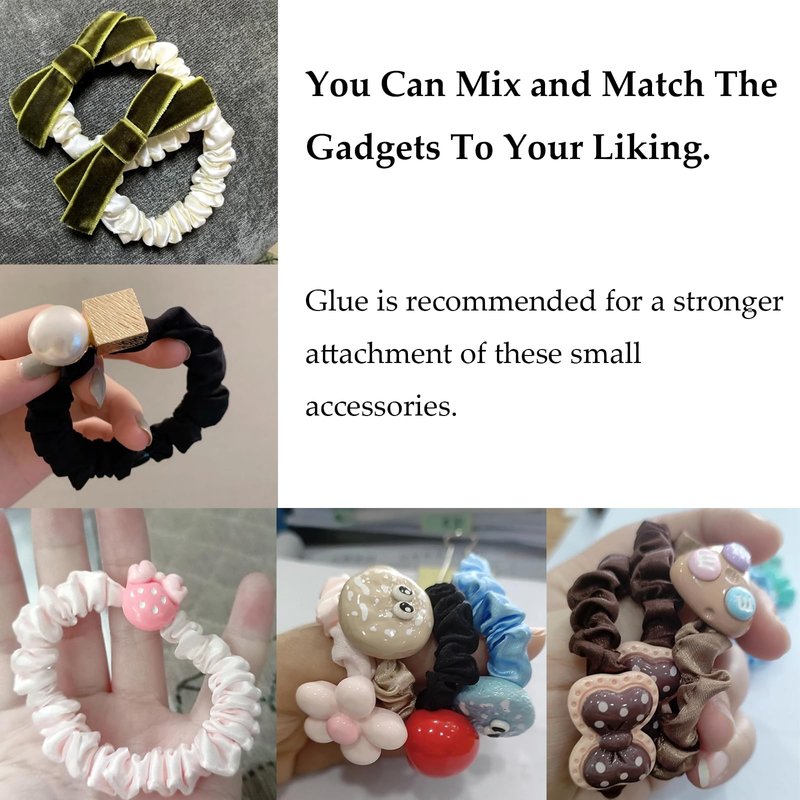 "Packing Including: You will get 10pcs colorful scrunchies hair ties and 5pcs bow tie resin accessories. To match your all kinds of outfits and looks you want to make, from ponytail, to half up ponytail, or as a decoration on wrist. Enough for daily wearing or sharing with friends and families, fit for most kids and adults. Soft Material: The hair ties made of smooth and soft shiny satin, strong and stretchable elastic band, our silk hair ties for women and girls is comfortable. Wide Application: Can be used at many occasions, such as evening party, wedding ceremony, date, birthday .Christmas parties, graduation, performance ,office or sports, and more. stocking stuffers for women, men. Simple Design: The satin scrunchies are simple design and well made satin scrunchies.Each hair band with a durable rubber band is stretchable and elastic, can fix your hair well and will not hurt your hair. DIY: You also can mix and match the gadgets to your liking. Glue is recommended for a stronger sttschment og these small accessories."