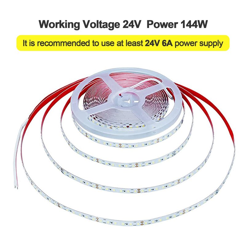 - 【24V LED Strip】The working voltage is 24V, The 24V light strip is 30% more efficient than the 12V light strip. It is Touchable to children and pets.To let it work, you need to buy a 24V DC Power supply, which is not included.It is recommended to use at least 24V 6A power supply for power supply.