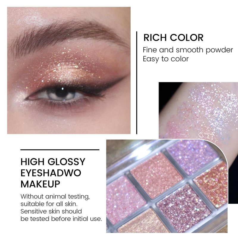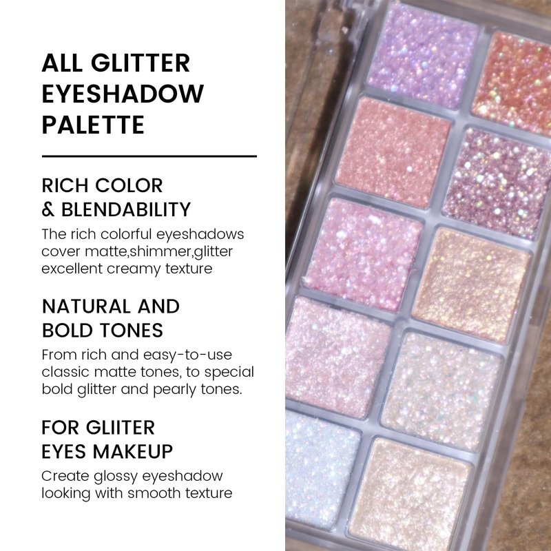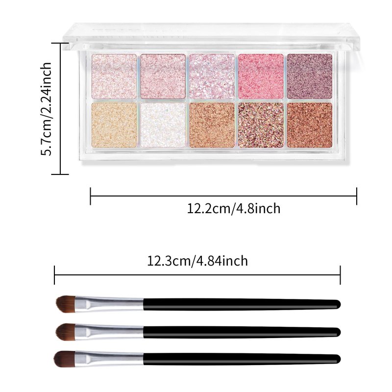 KYDA 10 Colors All Glitter Eyeshadow Palette, Sparkling Sequin Eyeshadow, Shiny Pearl Powder Eye Shadow, Multicolor Glitters Eyes Makeup, Pink Glitters Eyeshadsow Palette, Glitter Eyes Color