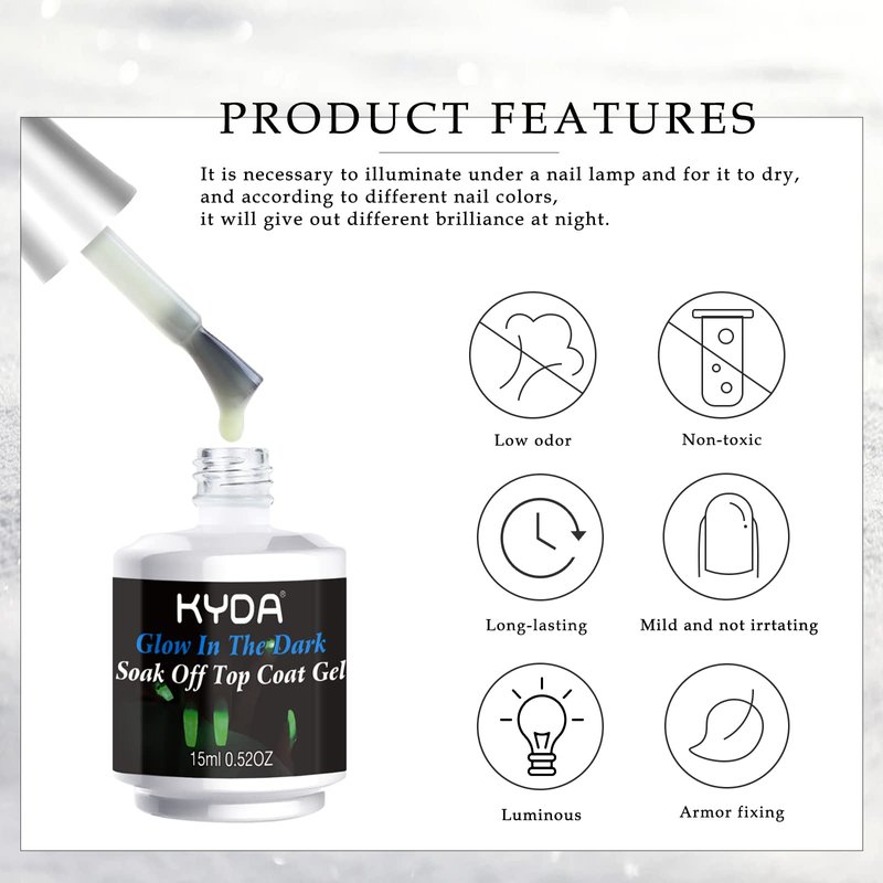KYDA 15ml Glow In The Dark Nail Gel Top Coat, Luminous Nail Gel Top Coat for Nail Art, Transparent Universal Nail Gel Seal Top Coat, UV LED Nail Gel Polish, 0.52 fl oz