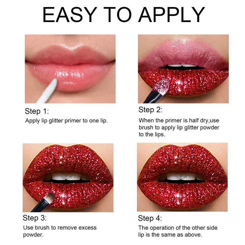 - 【Easy to Apply】This set comes with a clear lip gloss base, apply to lips before use, then use tool dipped in powder to apply directly on lips for a shimmery perfect lip finish.