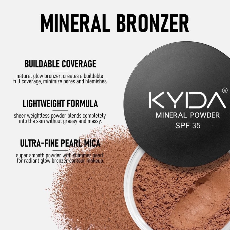 KYDA Mineral Powder Bronzer, SPF 35, Loose Mineral Bronzer, Lightweight Face Contour Powder, Buildable Coverage for Natural Glow Bronzer Makeup, Blendable Formula, Warmth
