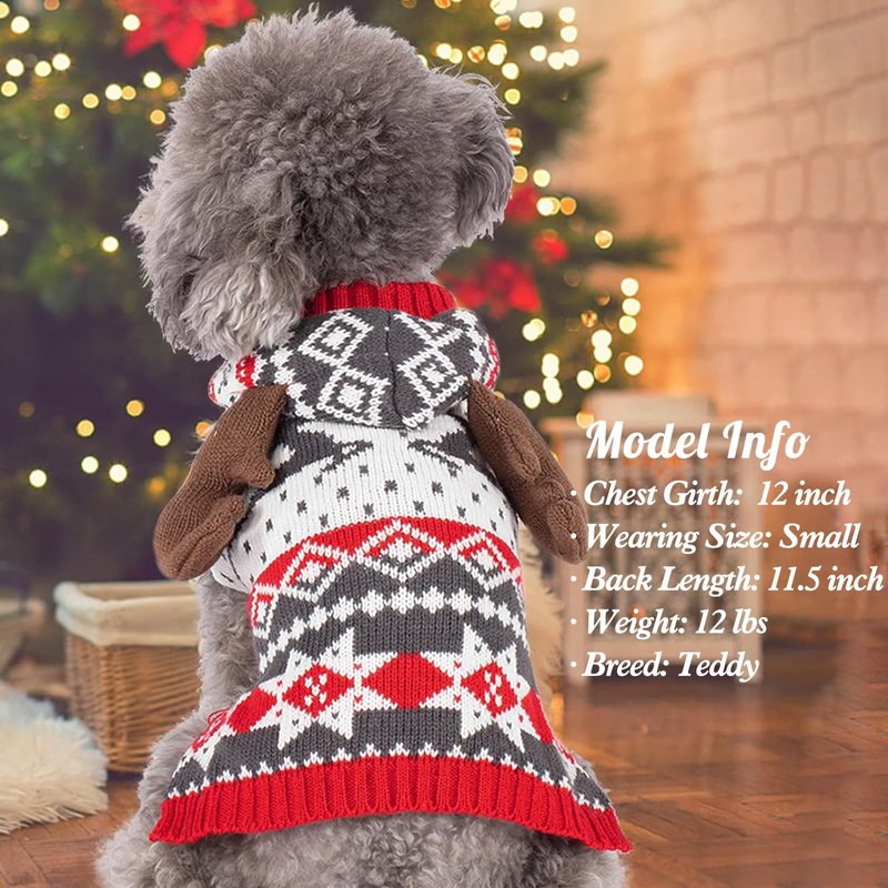 - 【Merry Christmas】Dress up your fur baby as a moose! A Christmas sweater with Cute Moose Hat, the dog wearing this sweater exudes cute charm and must be the most eye-catching presence.