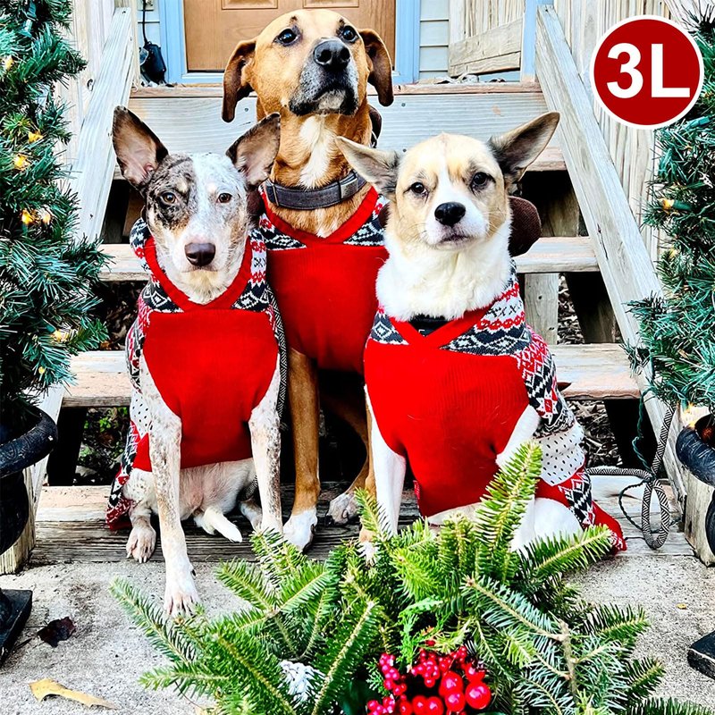 KYEESE Holiday Dog Sweater Christmas Hoodie with Leash Hole Reindeer Snowflake Red Dogs Knitwear Small Pullover Pet Sweater Christmas