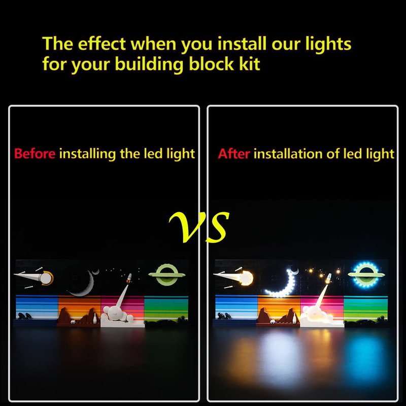 - MATERIAL AND TECHNOLOGY: Our LED lights for Lego space are compact and delicate, the combination of craftsmanship and handmade means better quality and details, the light wire will be hidden when installed on the model, playing the perfect illumination effect of led lights.
