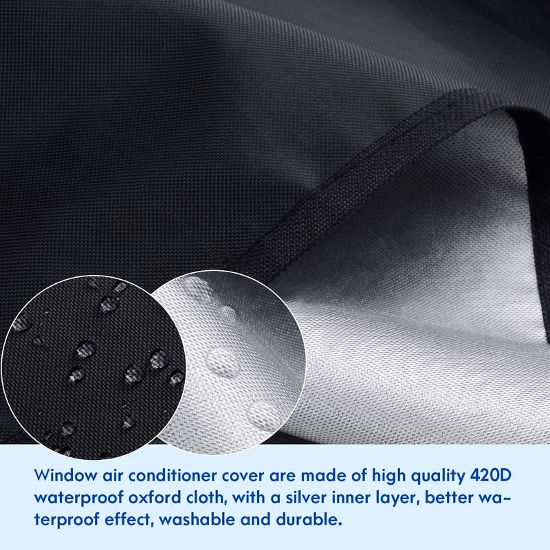 - PREMIUM QUALITY - Made of heavy-duty, waterproof 420D polyester,prevent the accumulation of rain and snow, protecting your AC window unit from rust and corrosion.