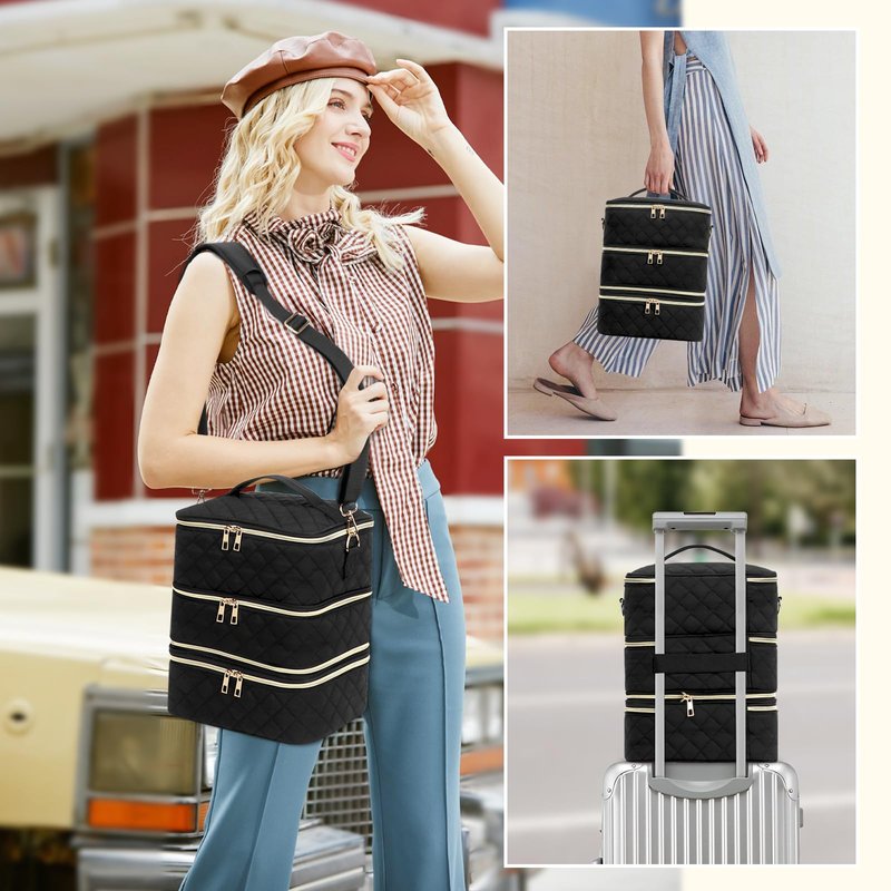 - 【Easy to Carry】KZAOPZ Nail polish storage with 3 carrying modes. The top layer has a durable and solid handle, the metal buckle on the two sides with an adjustable shoulder belt. On the back is an elastic luggage strap. When you need to go out with a large number of nail polish products, put the nail bag on the luggage to free your hands.
