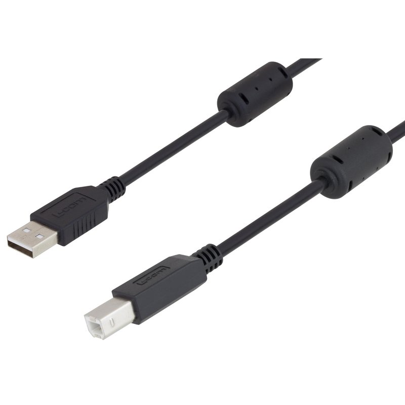 L-COM U2A00002-3M USB Cable, w/Ferrite, USB Type A Plug, USB Type B Plug, 3 m, 9.84 ft, USB 2.0, Black