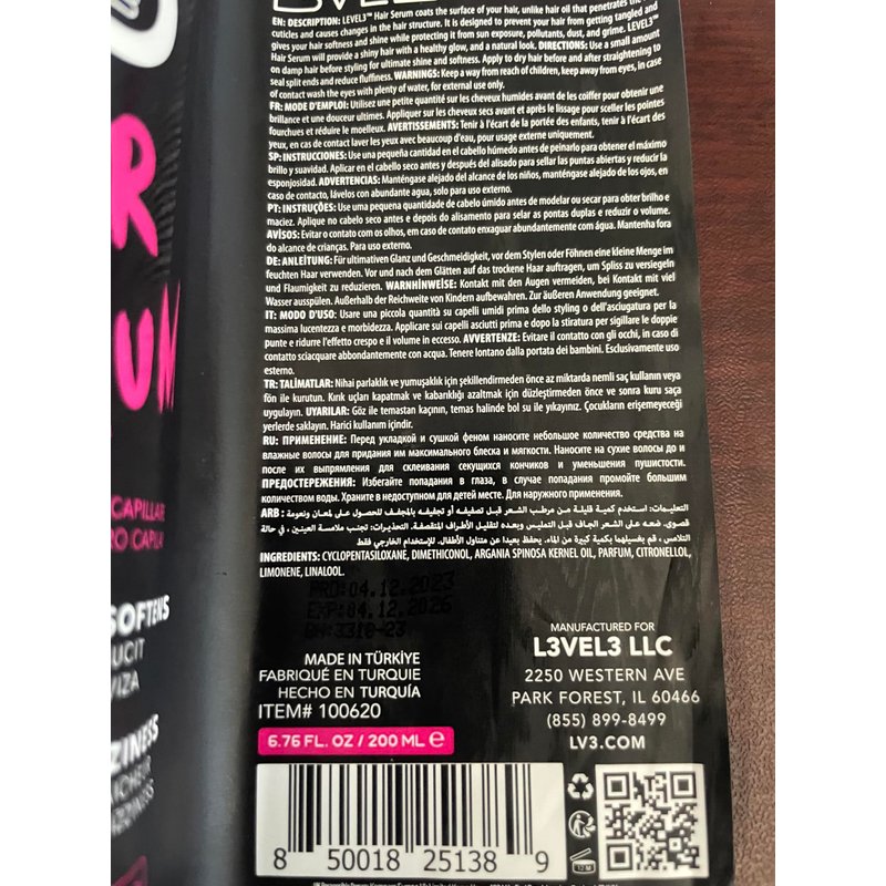 L3 Level 3 Hair Serum - Repairs your Damaged Hair - Softens and Smoothing - Level Three Hair Smoothing Serum - Reduces Frizziness (6.8 oz, Hair Serum)