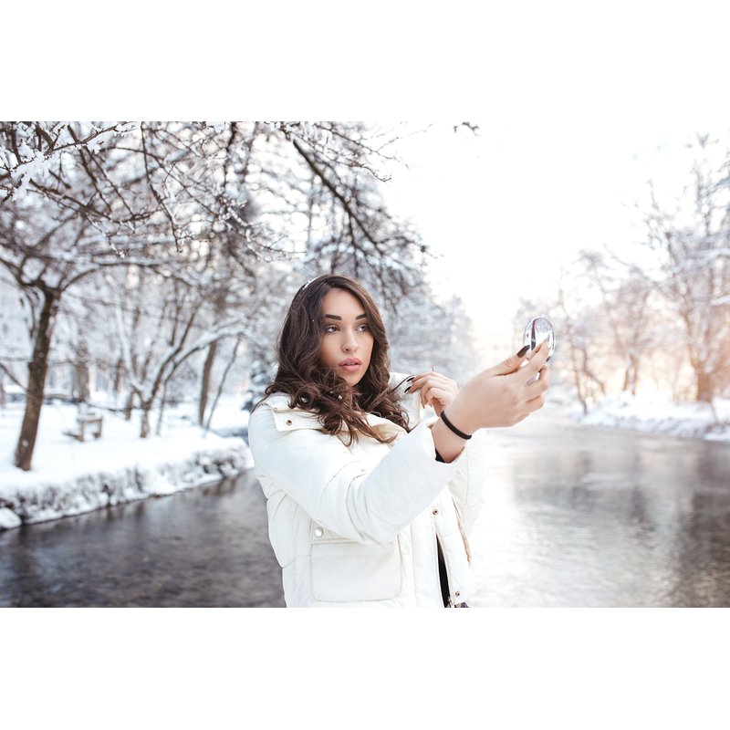 - Packaged in a slim, mirrored compact for on-the-go use