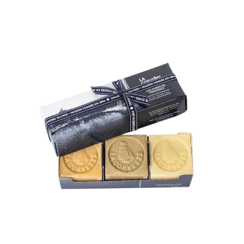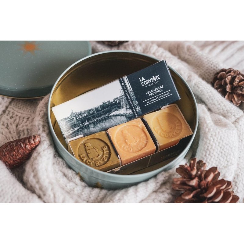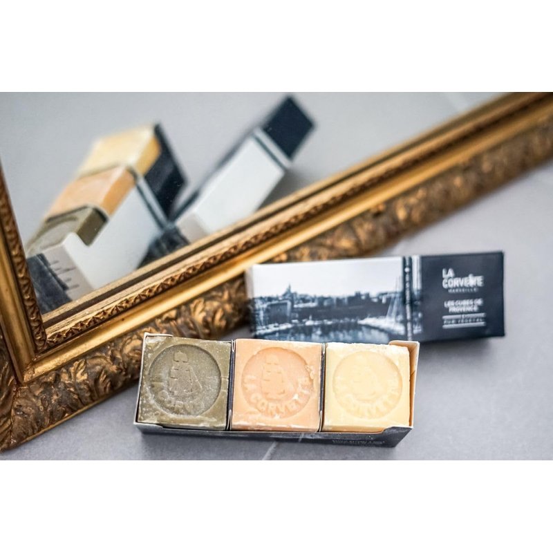 - The Les Cubes de Provence set includes 3 mini cubes of Marseille soap