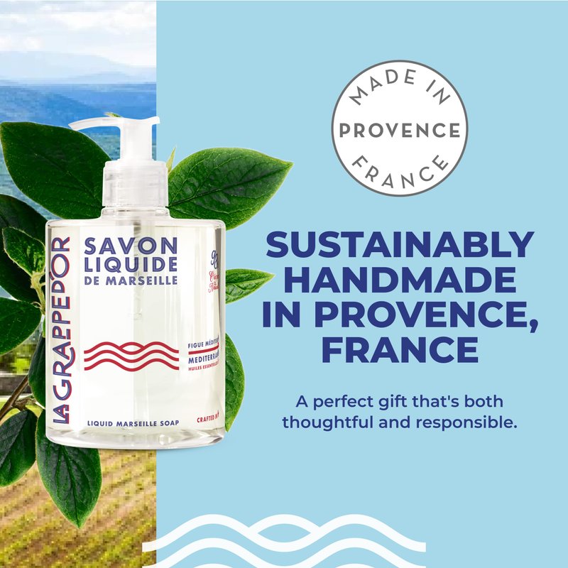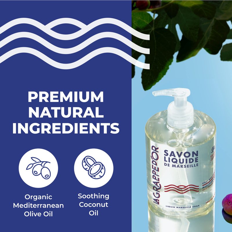 La Grappe d'Or Mediterranean Fig Marseille Hand Soap with Essential Oils | Handmade in France from Moisturizing Organic Olive & Coconut Oil | Natural, Cruelty-Free & Vegan, 16.90 oz Liquid