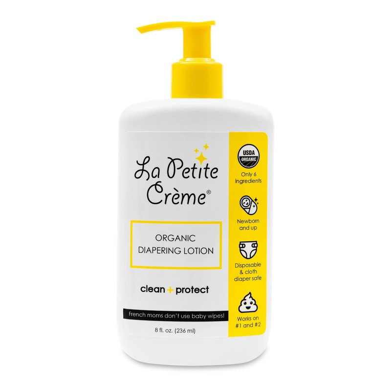 La Petite Creme French Premium Diapering Lotion - Diaper Cream Alternative to Baby Wipes - Gentle Moisturizer & Skin Cleanser with USDA Certified Organic Ingredients - Baby Essentials (8 oz)