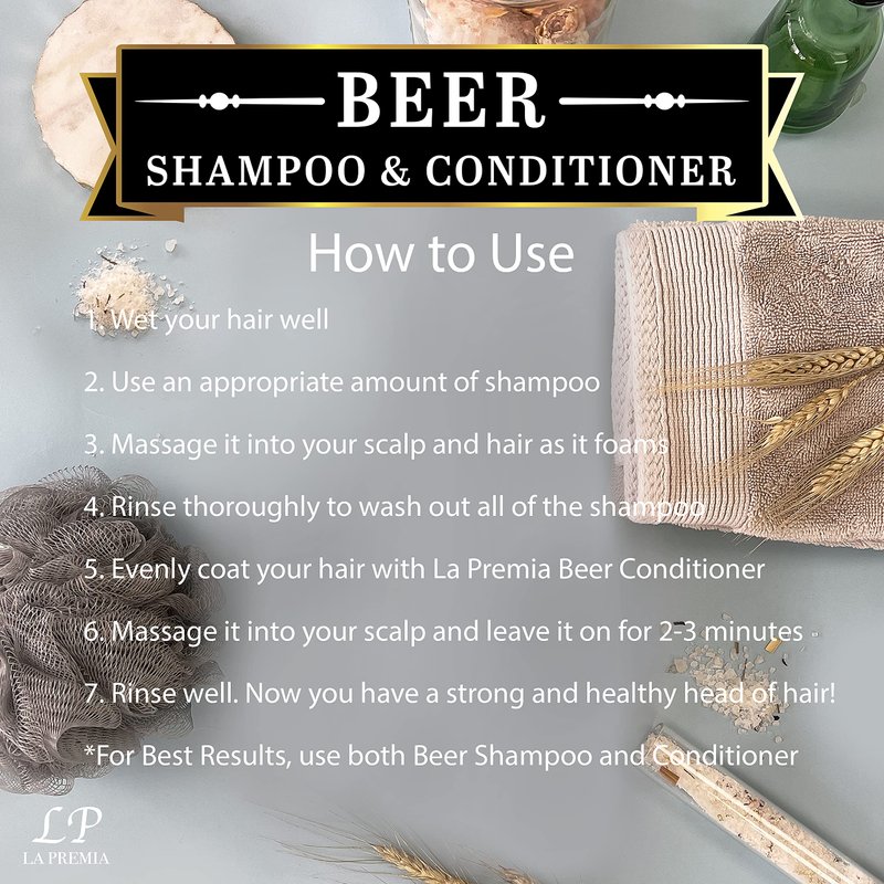 - 🍺 NATURAL INGREDIENTS - La Premia Beer Shampoo and Conditioner is made with natural ingredients which nourishes and hydrates your hair.