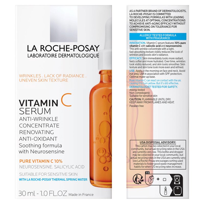 La Roche-Posay Pure 10% Vitamin C Serum For Face With Hyaluronic Acid & Salicylic Acid, Hydrating & Brightening Serum, Boost Radiance & Reduce Wrinkles, Paraben Free, Stocking Stuffers