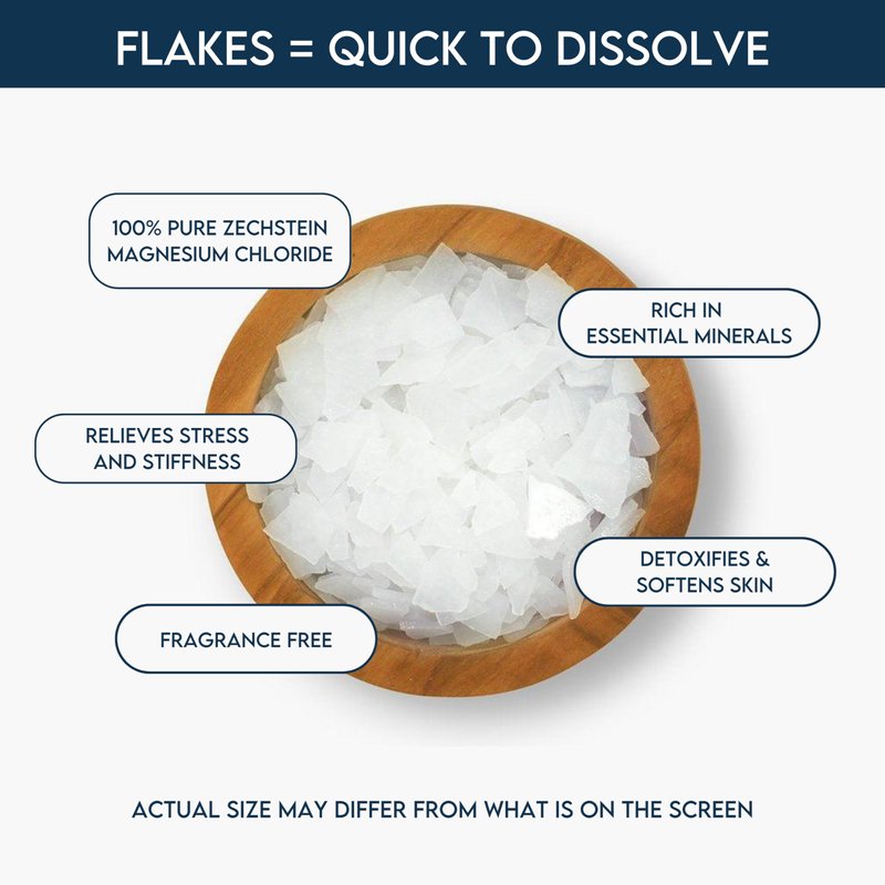 - WHEN EPSOM SALTS AREN'T ENOUGH: Magnesium chloride flakes have a higher bioavailability and concentration than epsom salt, and absorb faster and more easily into the body. Enjoy a full body bath salt soak or treat your sore feet to a foot bath to experience rapid relief for muscle soreness, headaches, skin conditions, sunburns, bug bites, and more.*