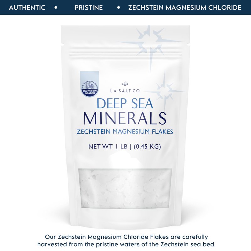 LA SALT CO Deep Sea Minerals Magnesium Bath Flakes, Zechstein Inside, Natural Bathing Alternative to Epsom Salt | Fast Absorbing Body & Foot Bath Soak for Relaxation & Muscle Relief | 1 LB