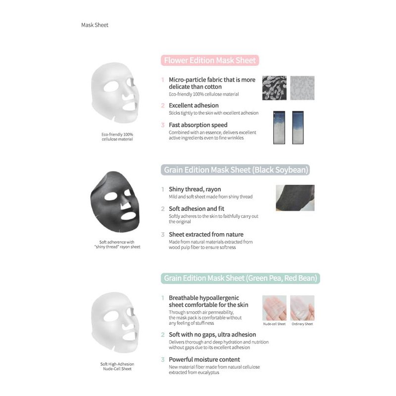 - Energy replenishment care with skin elasticity you can feel. A sheet mask that increases the moisture content of the skin and provides a silky texture.