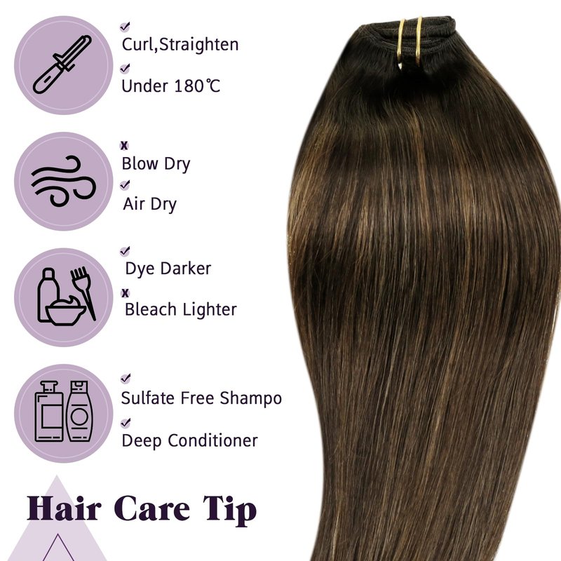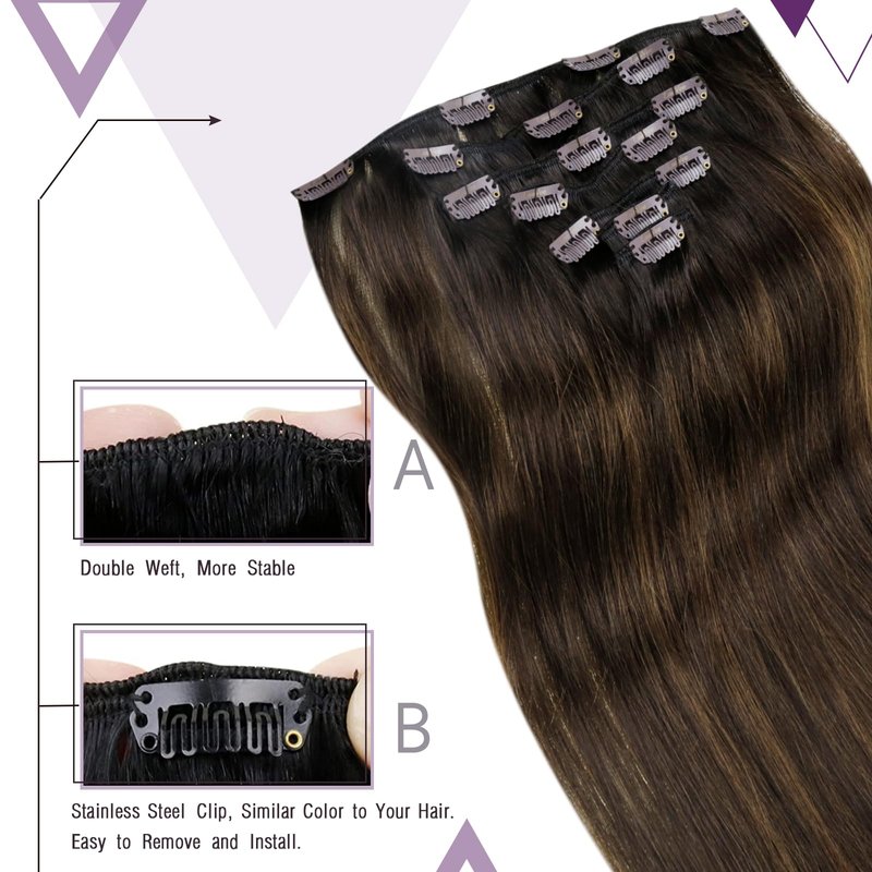 2.LaaVoo Clip in Human Hair extensions Balayage Brown is No glue,no tape,no damage to your own hair.You could wear it by yourself!