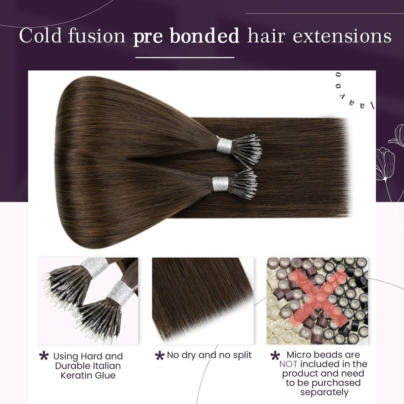 - Pre Bonded Fushion Tip: Nano Ring Hair Extensions each strands were well pre bonded individually, helping with the decrease of shedding hair. It is sugggested to install by professional hairdresser for a beautiful outcome