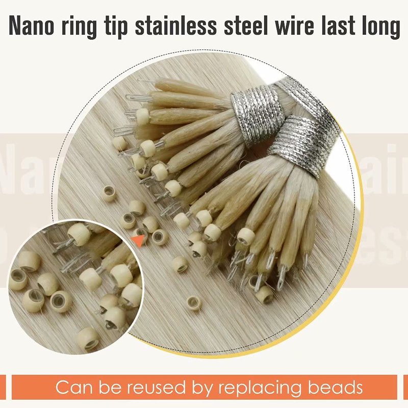 - 【Advantage】 Nano ring hair extensions is very similar to stick tip hair extension, however it has a small piece of wire into the tip of the extension in order to allow it to be fitted using a more small ring.