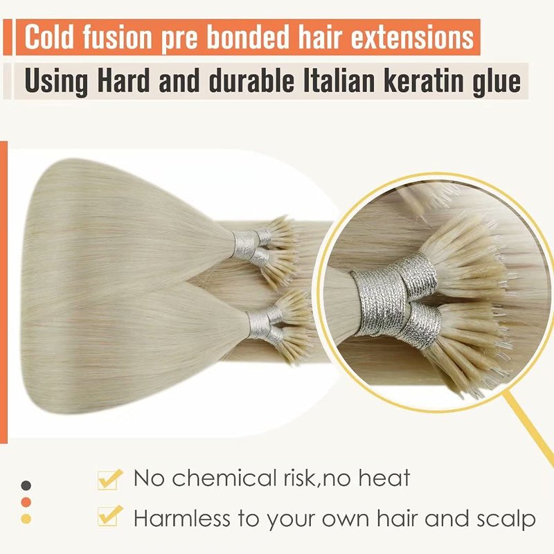 Nano tip hair extensions real human hair platinum blonde are lighter and allow your hair more freedom of movement.