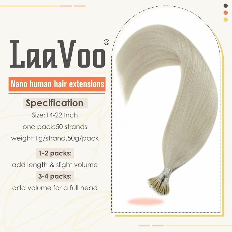 - 【No Tangle No Shedding】 LaaVoo Nano bead human hair extensions is made by remy human hair, healthy, soft, shine, and manageable. Can be washed, straightened and curled like your own hair. 1g/strand, 50g per pack, 2-3 packs is enough for a full head.