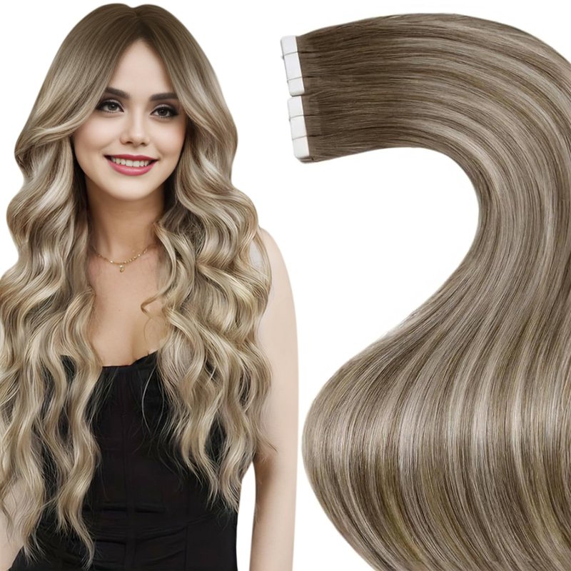 LaaVoo Real Hair Extensions Tape in Human Hair Tape in Extensions Human Hair 40pcs 100g Balayage Ash Brown to Blonde Mix with Platinum Blonde Invisible Tape in Hair Extensions 20 Inch