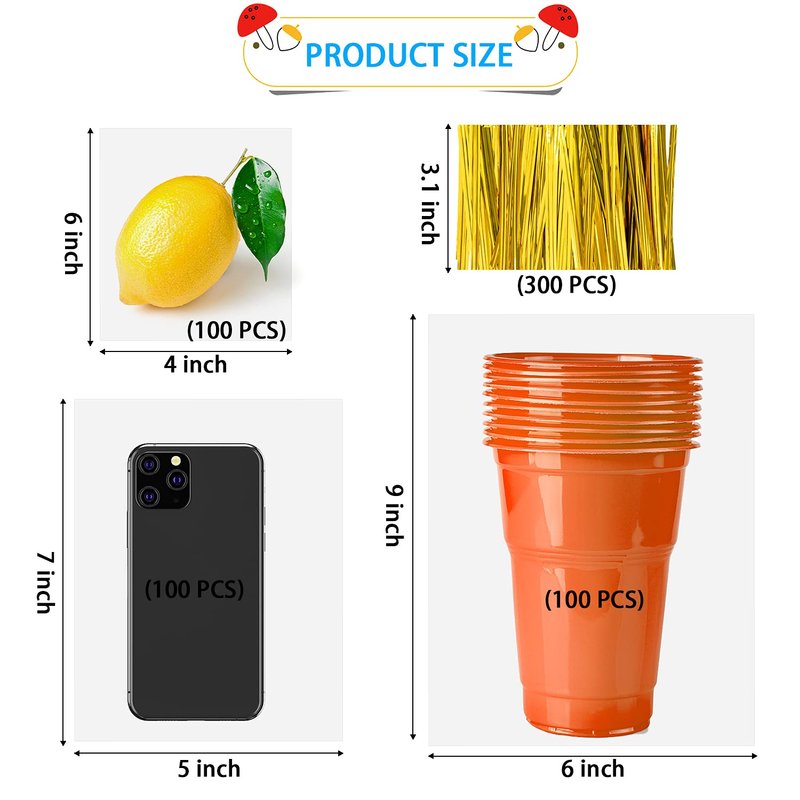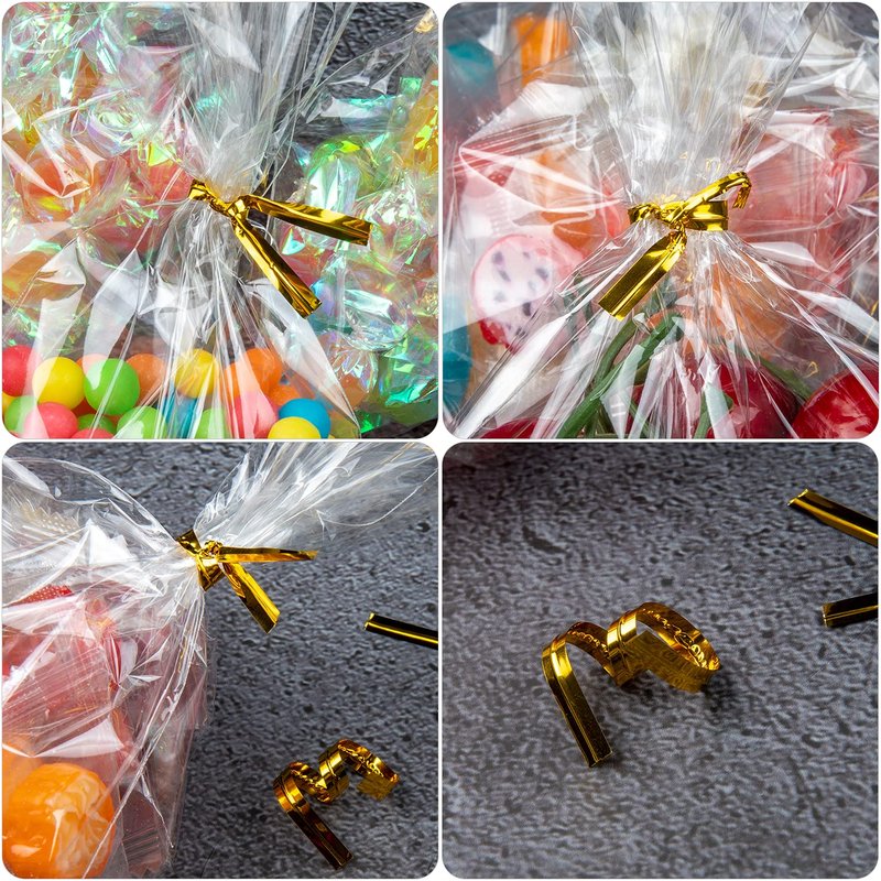 - 【VARIETY OF SIZES】Our cellophane treat bags set includes 300Pcs transparent flat clear treat bags of 3 DIFFERENT sizes: 100pcs 4×6",100pcs 5×7",100pcs 6×9" and 300Pcs 3.1" gold twist ties. The selected set of clear plastic bags can satisfy your needs for packaging in different occasions,including trading,birthday