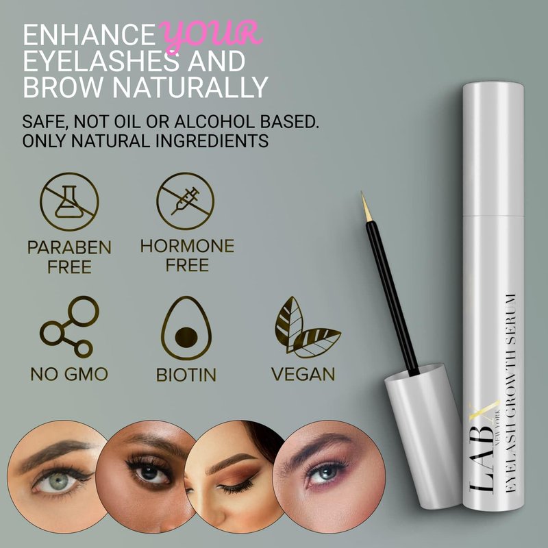 LABX NEW YORK Eyelash Growth Serum - For Healthier & Stronger Lashes, Natural Lash Serum for Eyelash Growth - Safe Formula Eye Lash Serum, Lash Growing Serum, Lash Enhancing Serum - 0.17 Fl. Oz., 5 mL