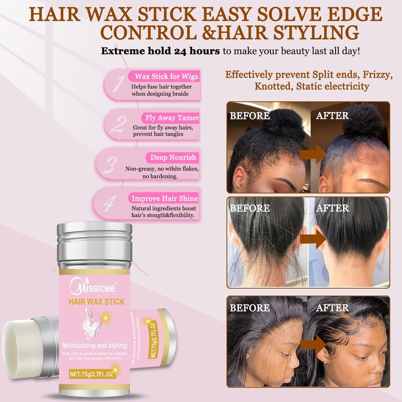 - Hair Wax Stick & Edge Control Gel: In order to get fashion and glamorous braid, lock or twist hairstyles. Hair wax stick & edge control gel is the best partner. You can first use the super hair wax stick holds your flyaways/stray hairs in place and smooth edge frizz hair, while boosting shine. The edge control gel keeps your hair moisturized, soft, manageable, allows you smooth baby hairs, temples and sculpt your own edges style and lets you shine a whole day