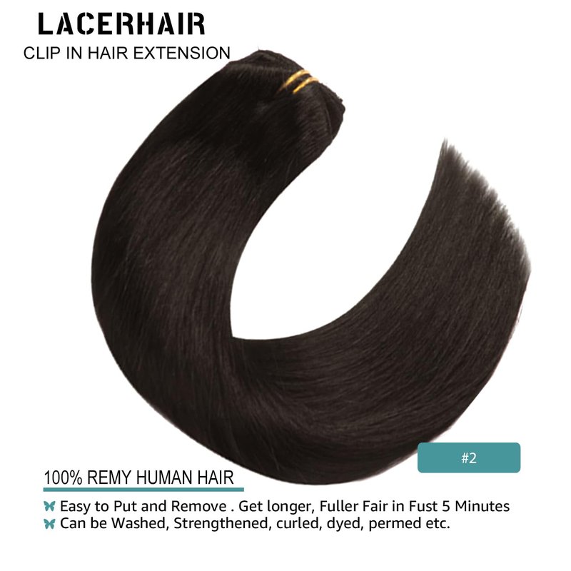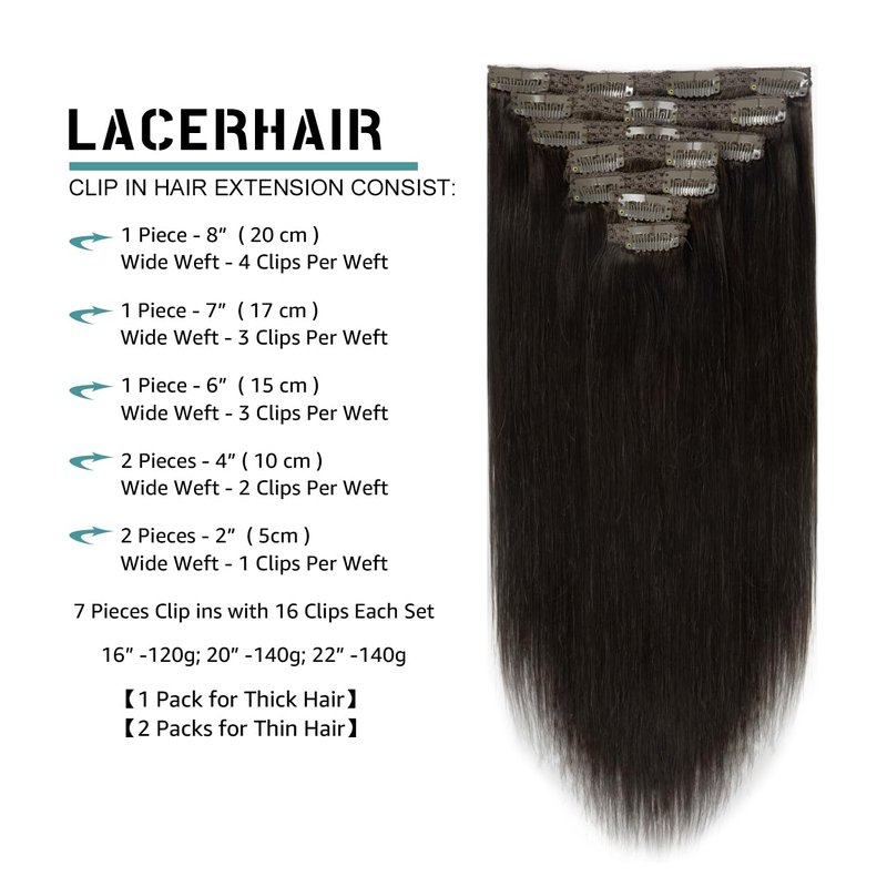 - Hair Extensions Specification-- #2 Darkest Brown Straight Lace Clip in Hair Extensions Human Hair ; Length: 14"-22" ; Quantity: 7pcs/set with 16 Clips Attached; Weight: 120-140 gram. -[ We Recommend 1 Pack for Thick Hair, 2 Packs for Thin Hair] -