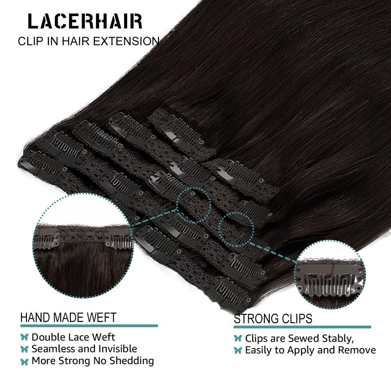 Lacer Brown Hair Extensions Clip in Human Hair 120g 7 pcs Double Weft Straight Lace Clip in Hair Extensions in Darkest Brown #2 14 Inch Full Head Set Clip Ins
