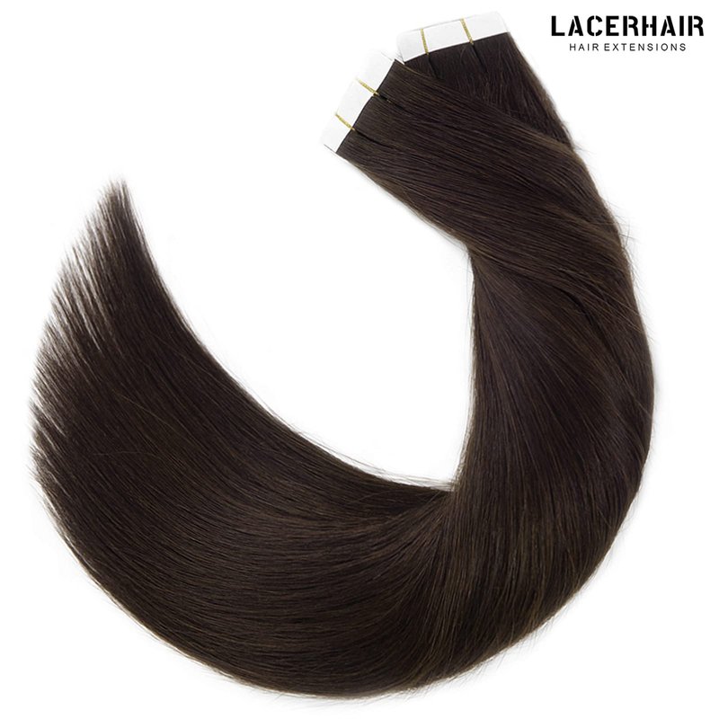 Lacer Hair Extensions Tape in Human Hair Dark Brown Virgin Hair Invisible Tape in Hair Extensions Real Human Hair for Black Women 50g 20pcs 18 Inch
