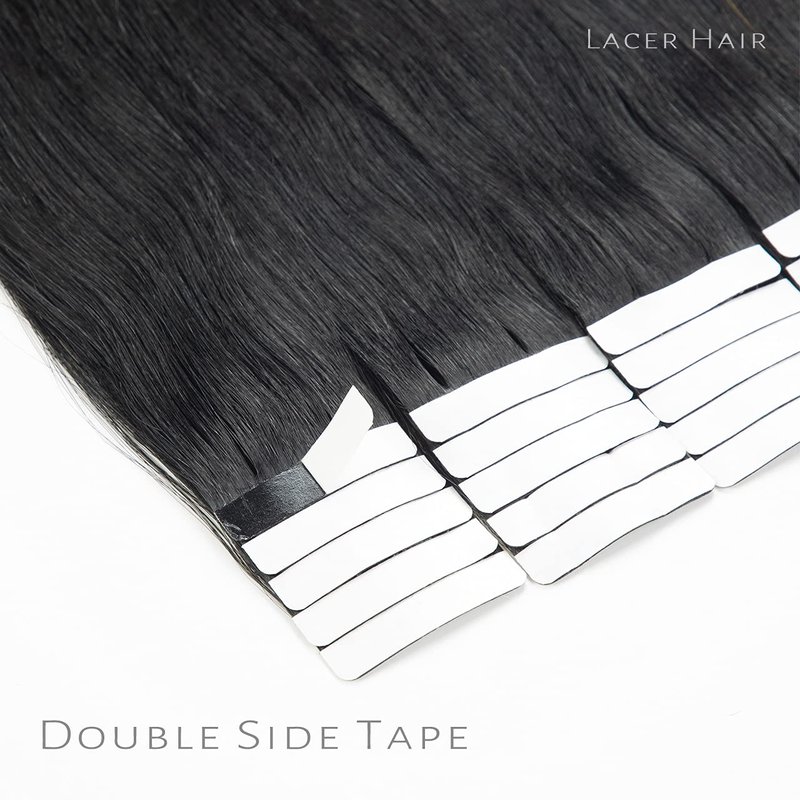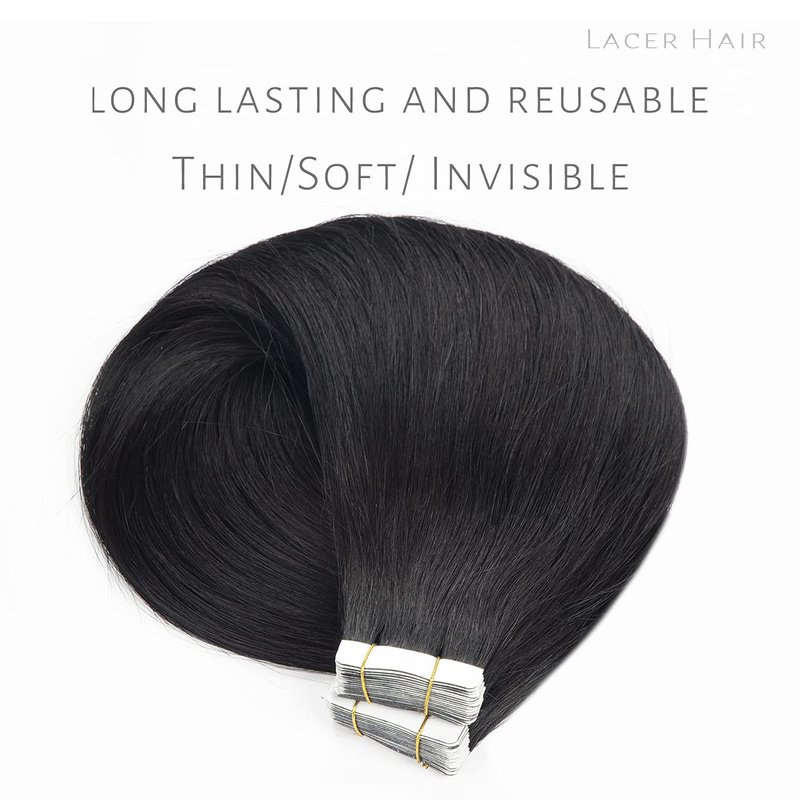 Lacer Hair Semi-permanent Real Remy Human Tape on Hair Extensions 50g 20pcs Tape Attached Skin Weft Invisible Seamless Reusable Jet Black Color #1 22 Inch