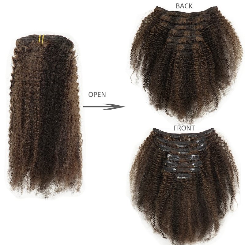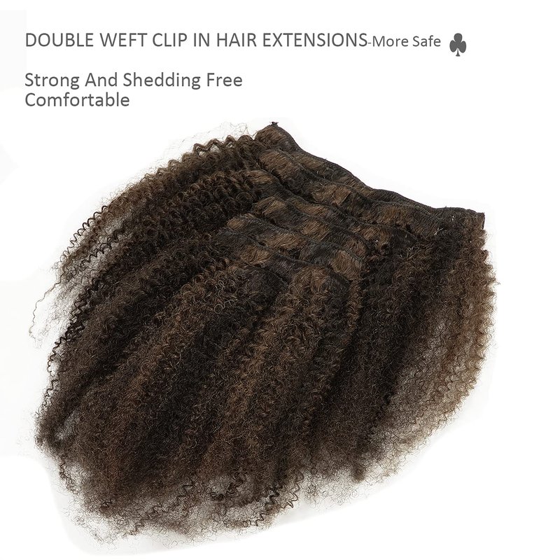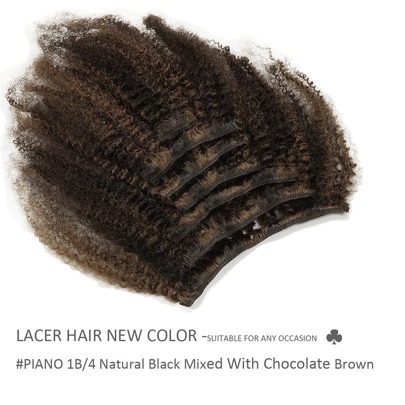 Lacer Hair Short Length Clips in Hair Extensions Afro Kinky Curly Human Hair Extensions for Black Women Piano Natural Black Mixed with Dark Brown 4B 4C Hair 120g Double Weft P#1B/4 AC 10 Inch