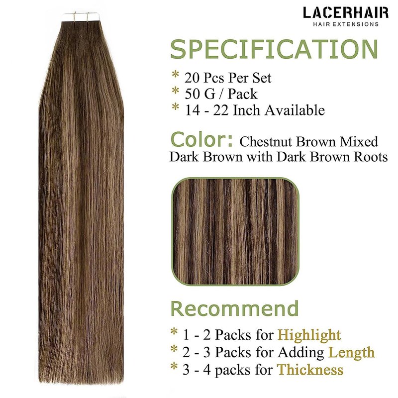 - 【Recommended Quantity】-- We Recommend 2-3 Packs for a Full Head Thin Hair, 3-5 Packs For Thicker Hair. Each Pack Of Lacerhair Tape in Human Hair Extensions is 50g, 20pcs, Light Weight.