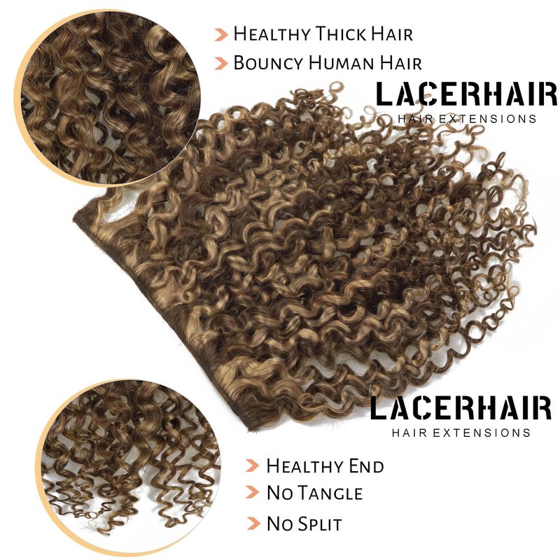 Lacerhair 3B 3C Curly Clip in Hair Extensions Highlight Strawberry Blonde Double Weft Soft Real Remy Hair Clip ins 18Inch Jerry Curly Human Hair Extensions for Black Women #P4/27