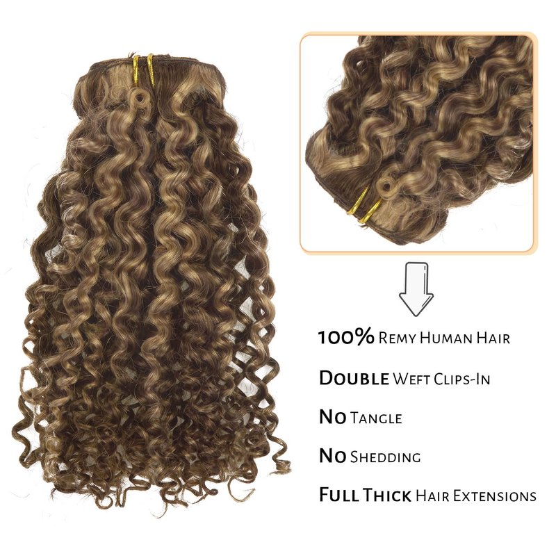 Hair Texture:3B 3C Jerry Curly Clip in Human Hair Extensions