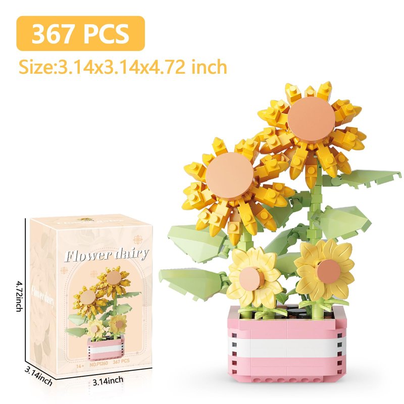 LACHLAND Mini Building Block Flower Toy for Kids 367 Pcs, Cute Artificial Plant Flowers Building Blocks for HomeOffice Decor, Birthday Gifts, Desktop Trinkets Aged 3 4 5-9 Years Old