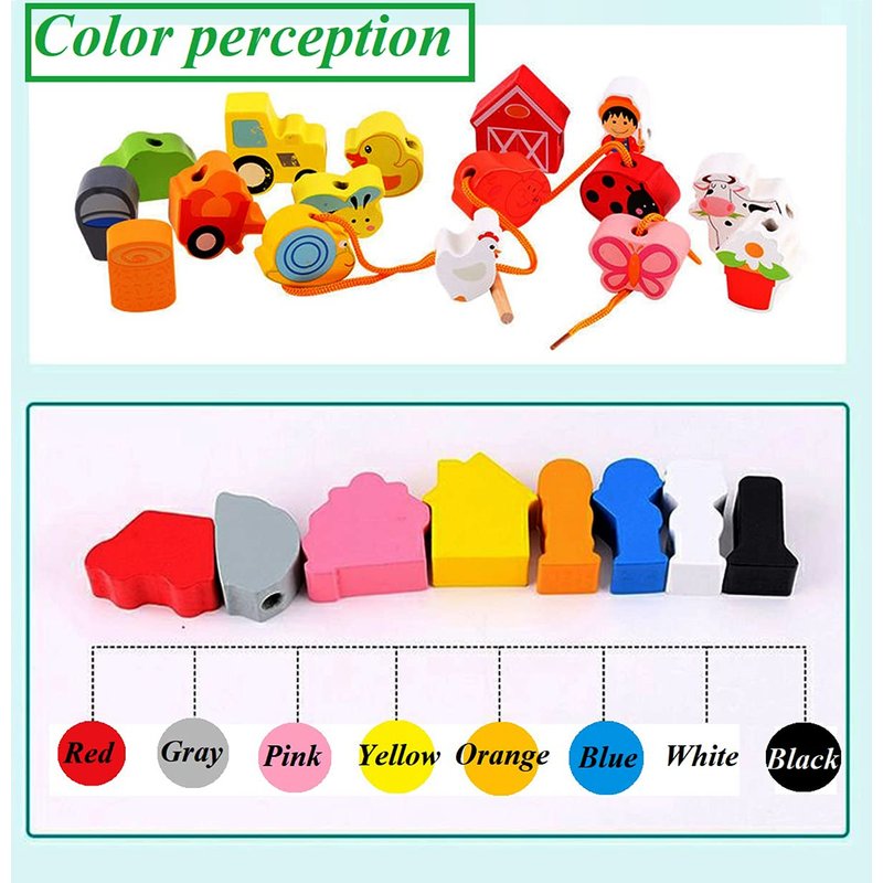 • ❤ [EASY TO PLAY]: These wooden toy laces via a nice sturdy wooden needle and the holes in the wooden are big enough to lace through. Children can learn how to bead the string after a few tries. Also parents can teach kids with the beads while playing.You can ask them which bead isLittle duck , which is Cows, and when the kids make the right answer, you can click your hands to encourage them.