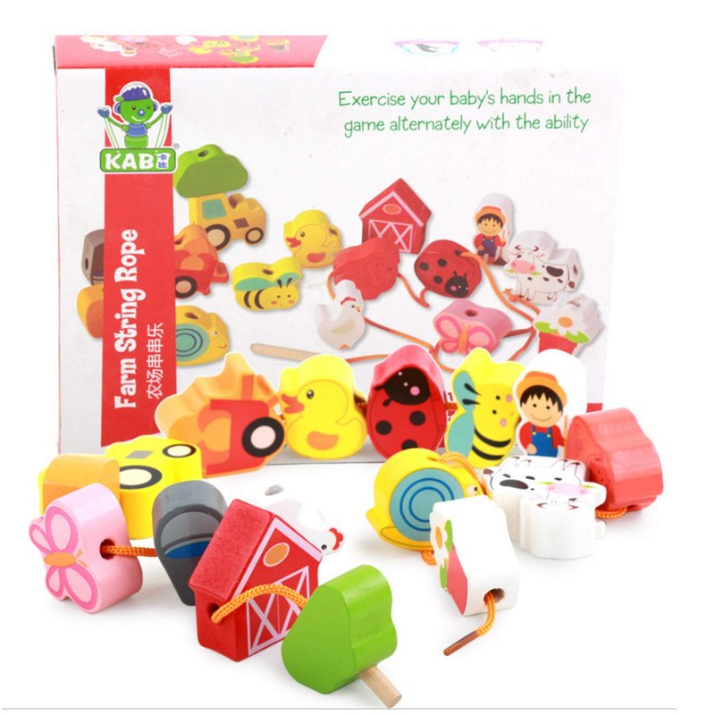 Lacing Farm Toy Wooden Block Set, Early Educati...